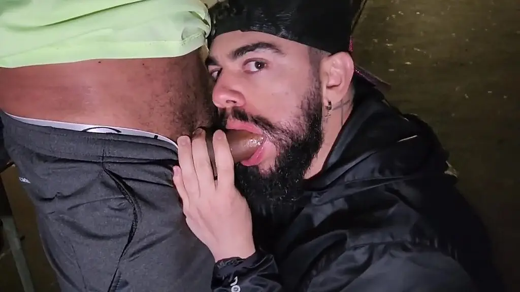 bahian stud gets double blowjob from young bearded guy and grizzled daddy on midnight viaduct