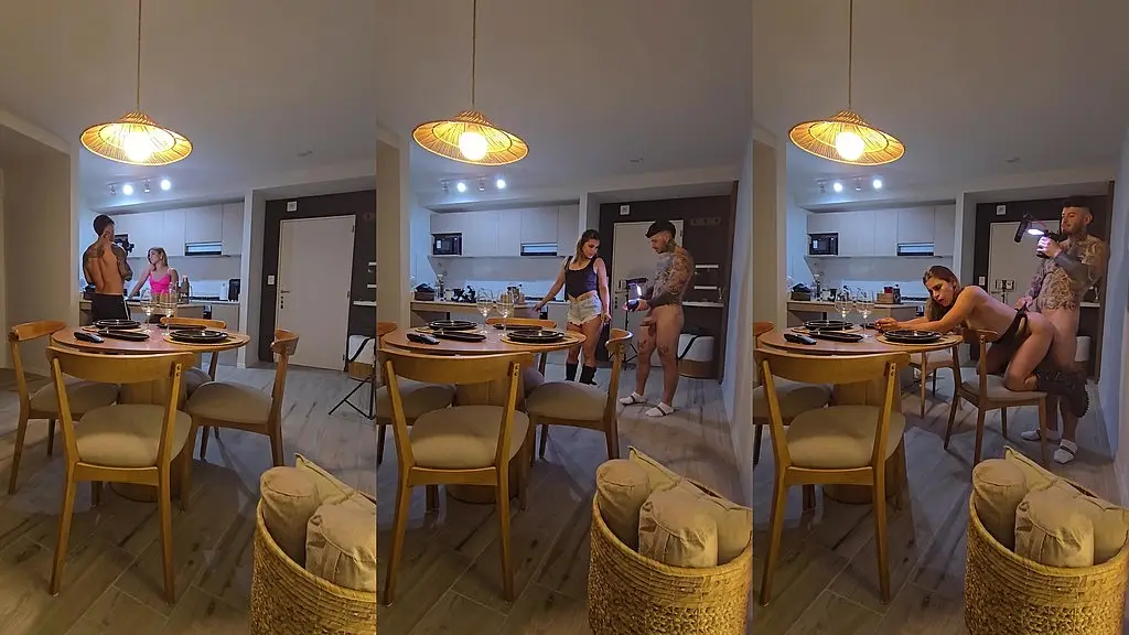 Villa andersonMy husband and I staged a scene about stepbrothers! I provoked him by taking off my clothes, so he decided to spy on me while I changed in the bathroom. I caught him and took off his pants to suck his cock and fuck him on the dining room chair like a real slut. He ended up fucking me on all fours and filling my pussy with cum!