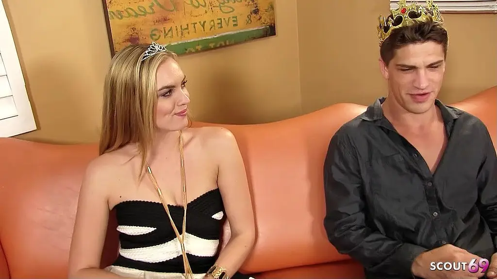 Блондинка-подросток с косичками и очками знакомится и разговаривает, чтобы заняться сексом со своим первым огромным членом на кастинге
