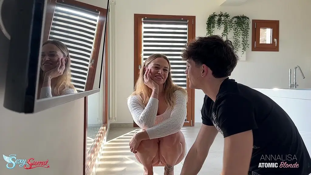 AnnalisaatomicblondeAnnalisa Atomic Blonde calls the antenna guy because her TV isn’t working. He arrives shy and awkward, but she teases him mercilessly: she strips and gets naked in the jacuzzi while he tries to work. The switch is insane: from shy boy to wild stud who takes her hard. She sucks him in the jacuzzi, then he carries her to the couch and fucks her in every position. Ends with a big cumshot on her face and tits. 100% real