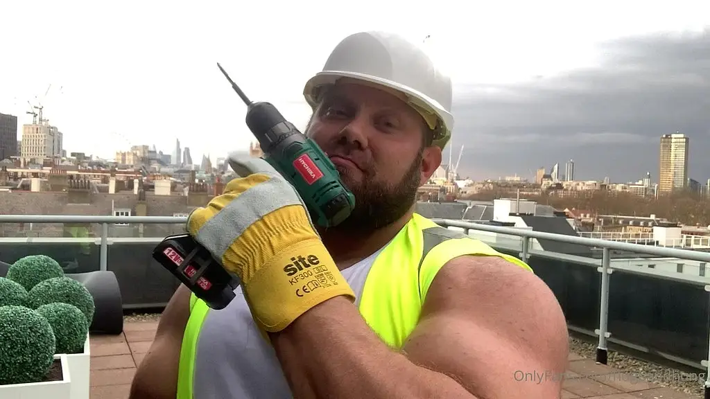 Early morning muscle flex on site before I start my job! Watch me flex my muscles with a city view! Bending iron, getting a real pump on! Then measuring my muscles.