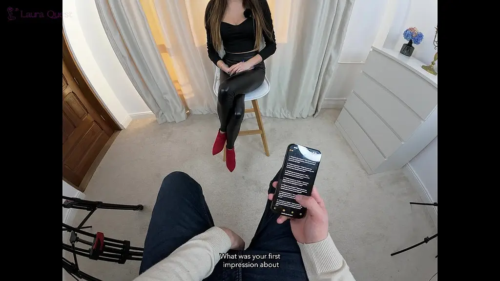 Laura Quest, interview, amateur, homemade, POV, VR, blowjob, doggy, brunette, braces, porn star, glasses, cowgirl, missionary, close up, role play