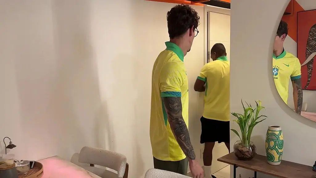 depois do jogo, levamos o gringo pra casa e fizemos uma dp nele