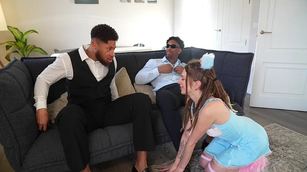 dos negros se follan su companera de piso y la disfrazan de gatita