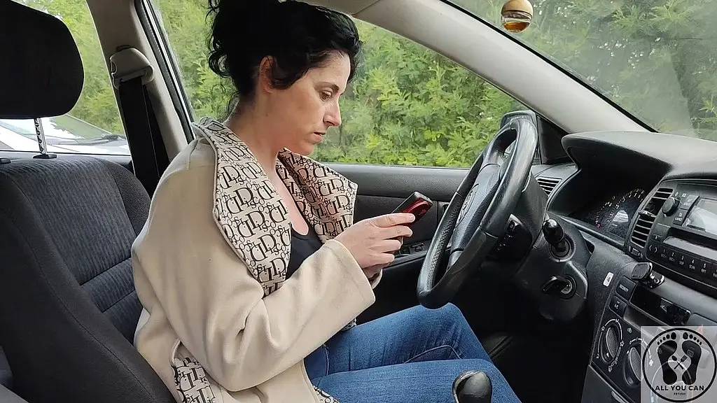 ЭММА СМАЙЛ Она выходит с работы и собирается завести машину, чтобы поехать на свидание с друзьями, что-то не так, она пытается завести машину, но она, похоже, не работает, что происходит? Она женщина, которая ничего не смыслит в машинах, она чувствует себя одинокой, отчаянной и расстроенной из-за своего гнева и бессилия, она начинает сильно нервничать, у нее перехватывает дыхание и она очень тревожится. Она чувствует сильный жар в теле и вынуждена снять верхнюю одежду, она продолжает трясти рулем и трясти сиськами от отчаяния и горя.
