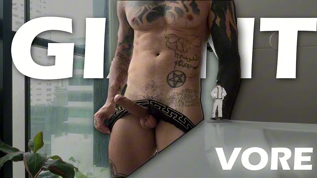 Macabreinkmacabreink is a giant demon who, upon returning from the gym in the morning, lets himself be watched by a tiny human. First, he undresses and lets himself be seen, then he masturbates and just when he is about to reach orgasm, he devours him.