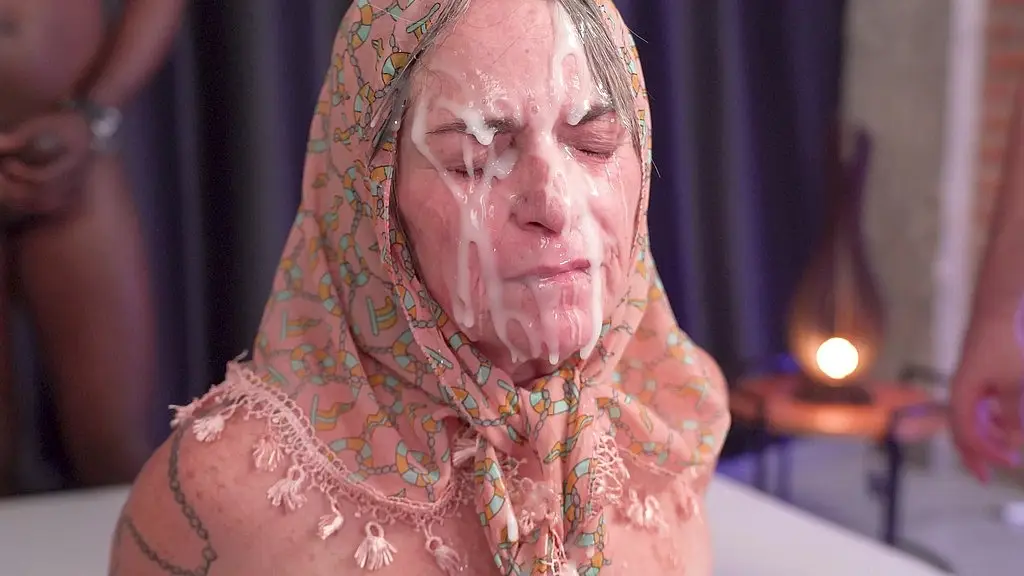 MatureGroupSexbusty headscarf granny gets all holes filled with big dicks at her first rough groupsex party and she not realy enjoys a massive bukkake facial on the end
