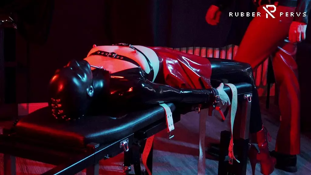 Немецкую латексную девушку в тяжелой резиновой маске растягивали и щекотали