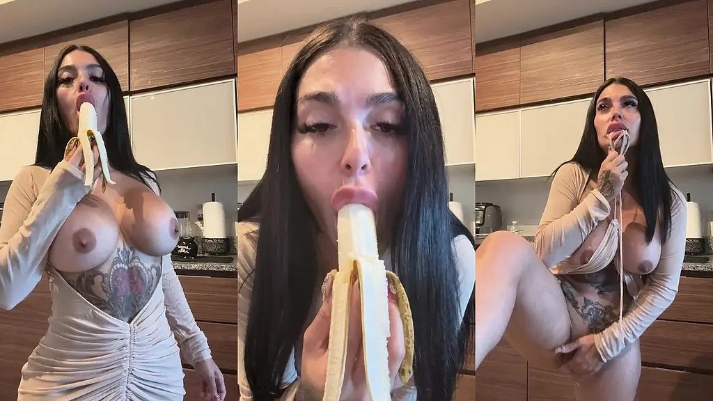 kitchen cumslut solo - banana deepthroat to dripping pussy play