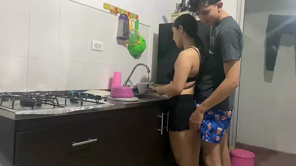 MI COMPAÑERA DE CUARTO ESTA EN LA COCINA COCINADO MI COMIDA Y APROVECHO PARA FOLLARMELA