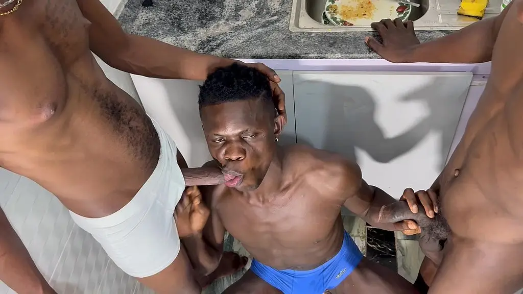Street boy was horny as fuck and wanted some dick. My friend and I gave him our big black cock