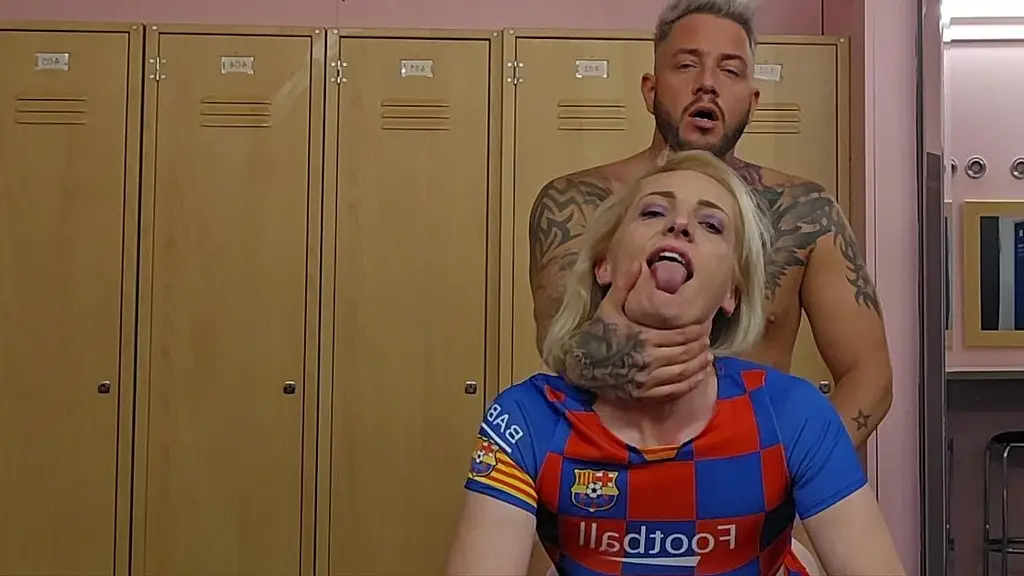 Footballer shows cheerleader how to swallow a cock and she begs for him to feed her his cum