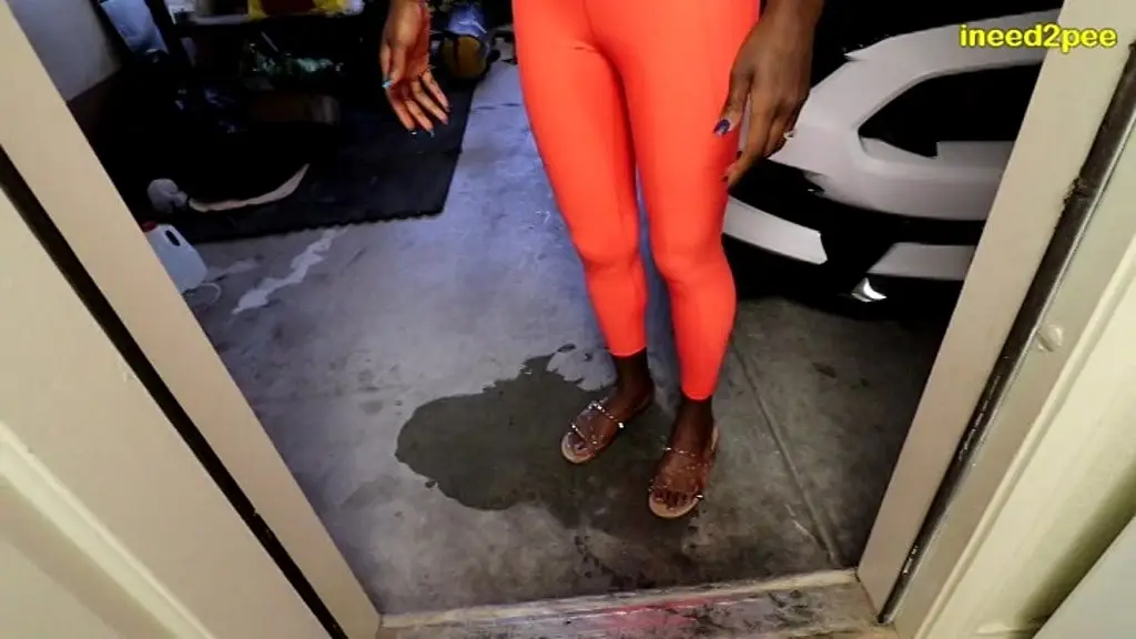 DiaperpervParis Luv is super desperate to pee and barely made it into her garage but she needs to take tiny little steps, very carefully to not jiggle her overly full bladder. Oh no, why is the door locked? She phones her roommate to see why that door is locked because it s not supposed to be. She s not going to make it to the toilet and with a worried look on her face & big sigh, she starts wetting her tight spandex leggings! It streams between her legs and you can hear it hissing out and splashing on the floor, making a nice puddle around her feet. I wasn t able to get the streams/trickles coming out with the one camera angle but you can really hear it splashing out! Her roommate gets home and she has to explain the situation. Afterwards, she shows her pissy wet CK panties and talks about a real pants wetting story.