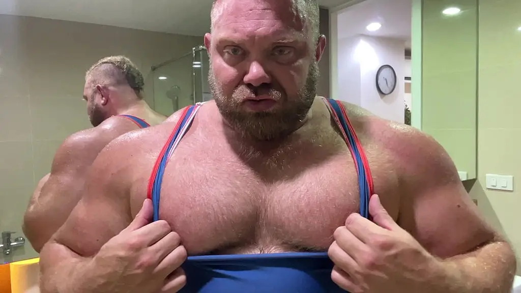 Get on your knees and lick my sweaty muscles whilst I flex and pump them!
