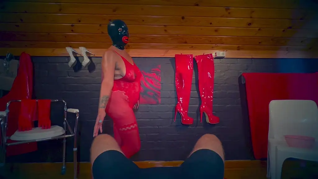 Dominatrix Mistress AprilSlave rose takes her perversion to another level. Latex mask, red long rubber gloves, she plays with my slaves cock, sucking it and fucking it, enjoying her reward to enjoy herself