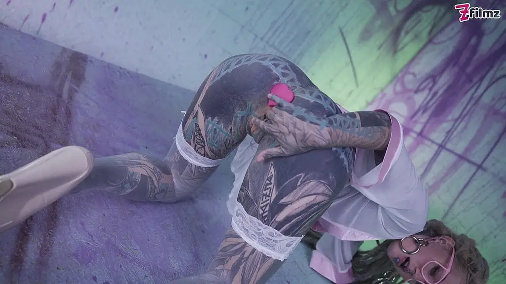 Z-FilmzДевушка с татуировками в хорошем наряде, в очках, с милым розовым анальным плагом в форме сердечка, ласкает свою тугую татуированную киску пальцами, лижет её, пробует на вкус свою собственную киску и продолжает ласкать свою киску пальцами в позе «собачка», пробуя на вкус свою вагину, а парень с татуировками ложится и делает минет своему татуированному члену, чувствуя её раздвоенный язык, и скачет на его татуированном члене, чтобы сказать ему, насколько мокрая у неё киска, и трахает её в позе «собачка», используя её любимую волшебную палочку, и кончает ей на лицо, и ей нравится вкус этой спермы!