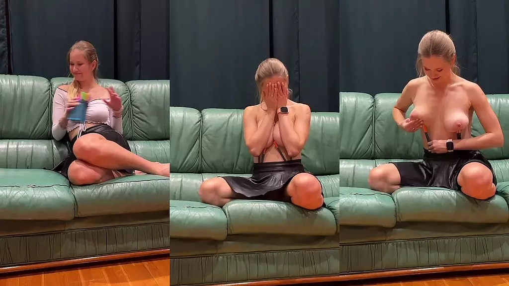 У красавицы такая большая грудь, что она держит карандаши