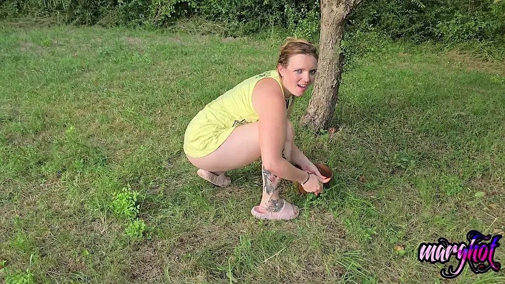 Sexymarghot...mec contre un pommier ..Il mec défonce et ça a acité le cameraman je lui предложить donc de mec baiser sur le Trateur tondeuse qui étais pas loin..